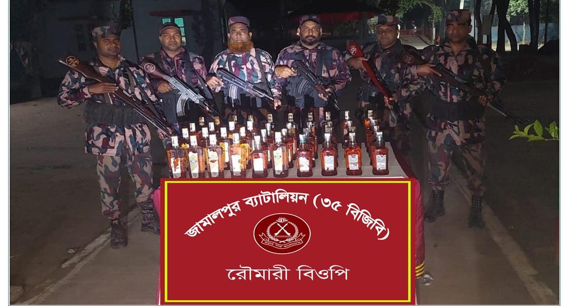 সোমবার (১৭ নভেম্বর) রাত আনুমানিক ৯টা ৩০ মিনিটে নিজস্ব গোয়েন্দা তথ্যের ভিত্তিতে রৌমারী বিওপির একটি দল মাদকবিরোধী অভিযান চালায়। সীমান্ত পিলার ১০৬৪/এমপি থেকে প্রায় চার কিলোমিটার বাংলাদেশের অভ্যন্তরে রৌমারী সুইজগেট এলাকায় এ অভিযানে বিপুল পরিমাণ ভারতীয় ও বিদেশি মদ আটক করা হয়।