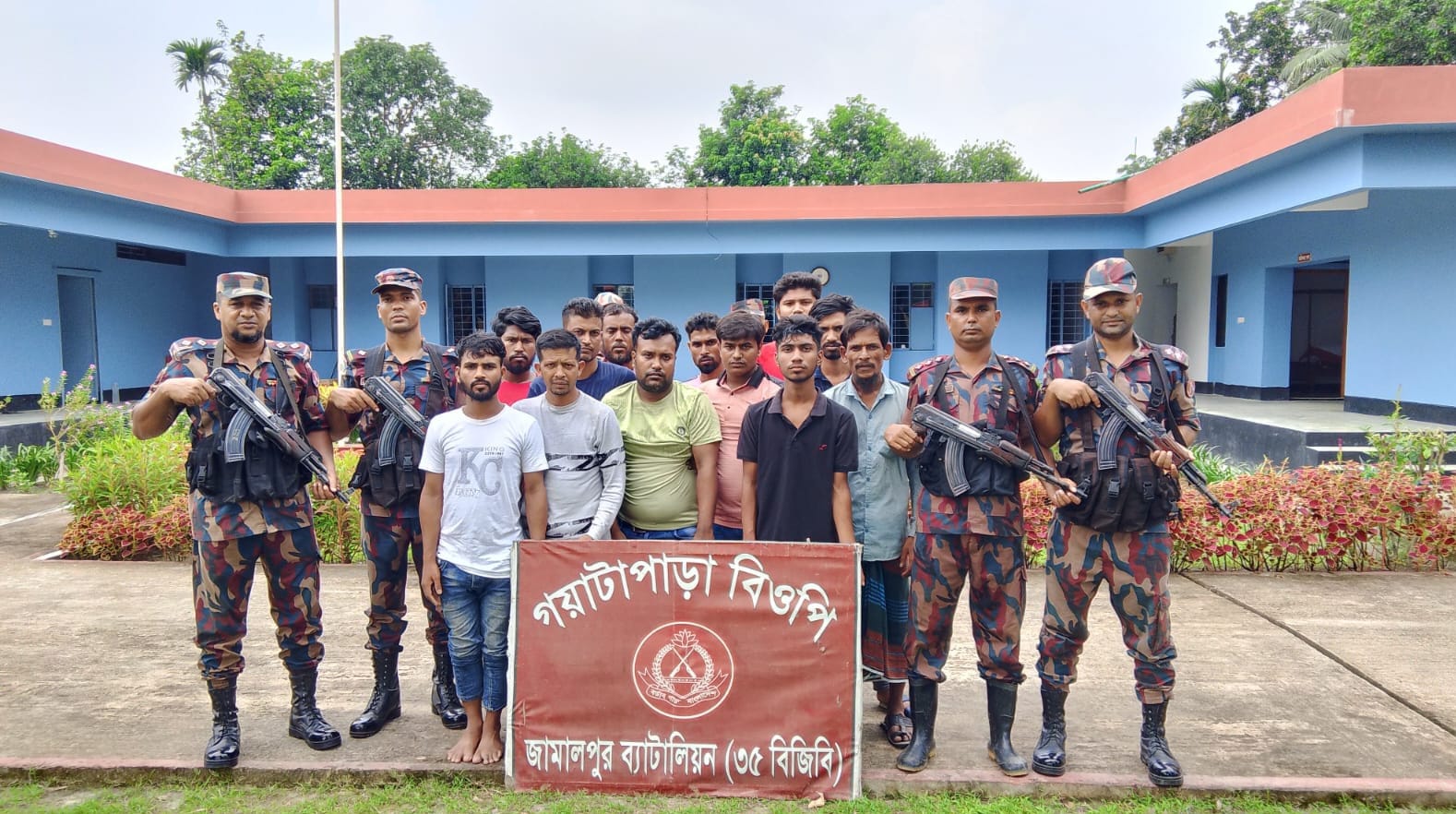 আটক বাংলাদেশীরা হলেন, কুড়িগ্রাম জেলার রৌমারী উপজেলার টাপুরচর গ্রামের ইয়াকুব আলীর ছেলে (১) আশরাফুল আলম (২৬), ওইশরগঞ্জ থানার চরজীতর গ্রামের আব্দুল হেলিমের ছেলে(২) মোফাজ্জল হোসেন (২৯), ফুলপুর থানার নারিজেলী গ্রামের ওসমান আলীর ছেলে (৩) নবী হোসেন (২৬), ফুলপুর উপজেলার সিংহের শবর গ্রামের আক্কেল আলীর ছেলে (৪) ফরকান আলী (৩১), হালুয়াঘাট থানার সাকুয়াই গ্রামের ইব্রাহিম খলিলের ছেলে (৫) ওলিউল্লাহ (২৫), ফুলপুর থানার কাতলী গ্রামের রমজান আলীর ছেলে (৬) হযরত আলী (৩৬), ভালুকা থানার মাহমুদপুর গ্রামের মোশারফ পাঠানের ছেলে (৭) ওবায়দী হাসান (২২), ফুলপুর থানার চর গোয়াডাঙ্গা গ্রামের তাফাজ্জল হোসেনের ছেলে (৮) শফিকুল ইসলাম(৩৫) সর্ব জেলা ময়মনসিংহ। জামালপুর থানার পাথলিয়া সাতার মোড় ইসমাইল এর ছেলে (৯) মানিক মিয়া(২৯) জামালপুর। নারায়নগঞ্জ জেলার সিদ্ধিরগঞ্জ থানার চরসুমিল গ্রামের মোক্তার হোসেনের ছেলে (১০) আরিফ হোসাইন(৩৬)। পাঁচদুনা থানার আসমান্দিরচরের নুরুল আমিনের ছেলে (১১) মিজানুর রহমান(২৩) নরসিংদী, গাইবান্ধা জেলার সুন্দরগঞ্জ থানার দক্ষিণ হাতিবান্দা গ্রামের রহমত উল্লাহর ছেলে (১২) মনির হোসেন (৩৮)।