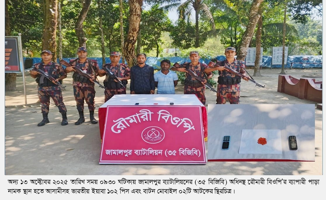 ৩৫ বিজিবির সহকারী পরিচালক ও ভারপ্রাপ্ত অ্যাডজুট্যান্ট ইমাম হোসেন এক সংবাদ বিজ্ঞপ্তির মাধ্যমে বিষয়টি নিশ্চিত করেছেন।