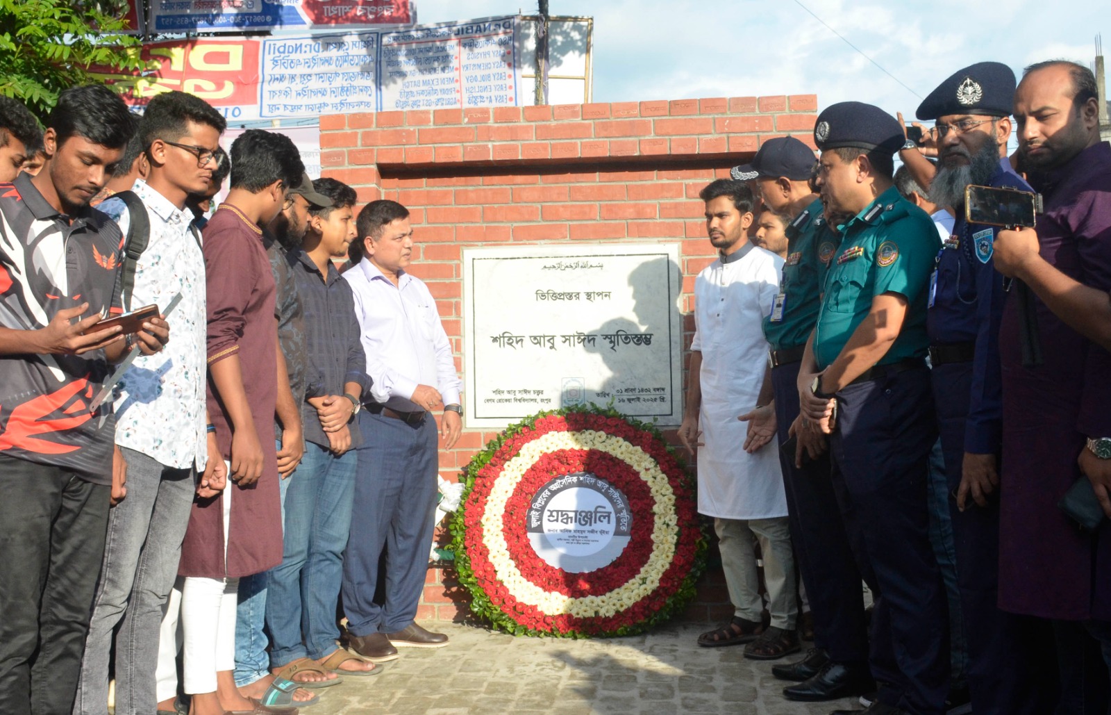 বৈষম্যবিরোধী ছাত্র আন্দোলনে বেগম রোকেয়া বিশ্ববিদ্যালয়ের ইংরেজি বিভাগের শিক্ষার্থী শহীদ আবু সাঈদের স্মরণে ‘শহিদ আবু সাঈদ স্মৃতিস্মম্ভ’ পরিদর্শন শেষে ফুল দিয়ে শ্রদ্ধা নিবেদন করেন স্থানীয় সরকার, পল্লী উন্নয়ন ও সমবায় মন্ত্রণালয় এবং যুব ও ক্রীড়া মন্ত্রণালয়ের উপদেষ্টা আসিফ মাহমুদ সজীব ভূঁইয়া।