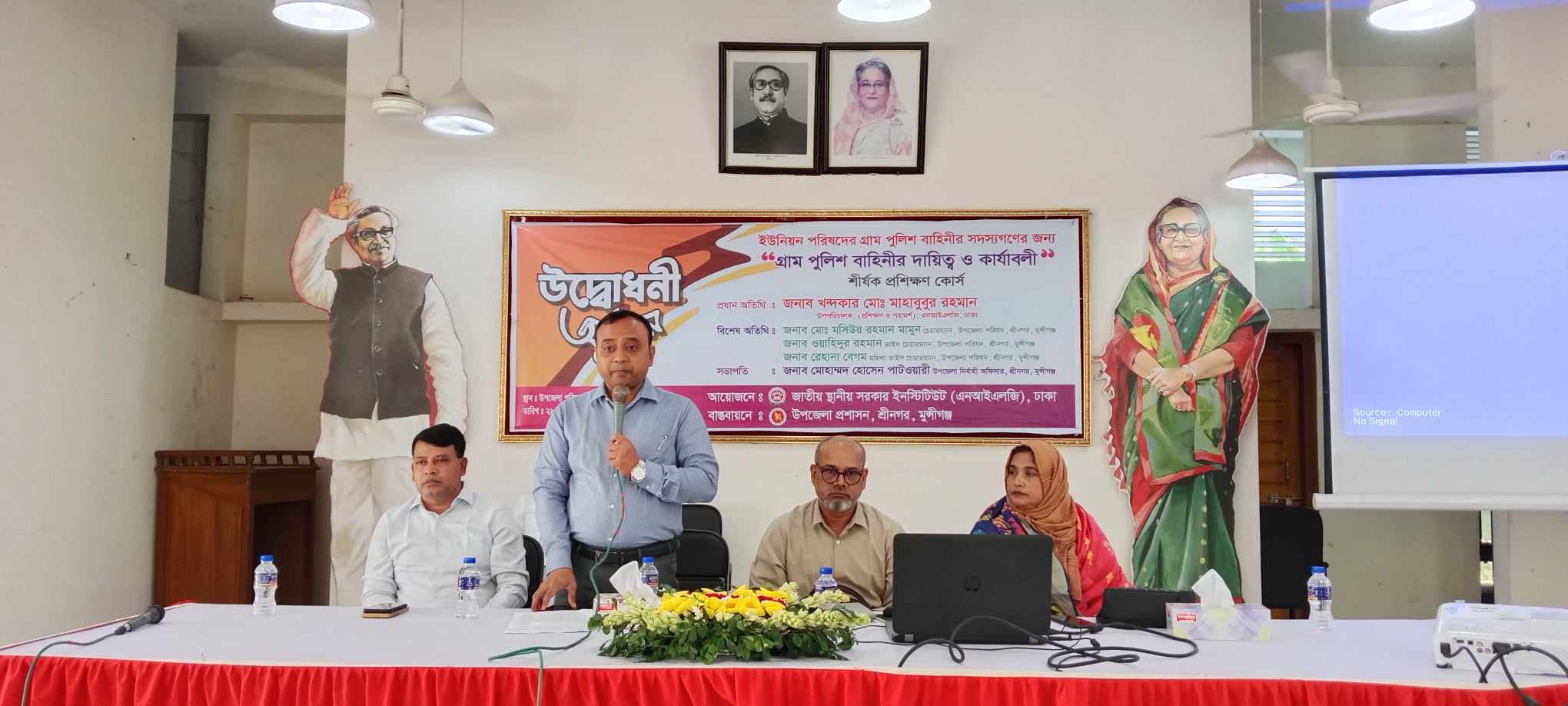 এমএ কাইয়ুম মাইজভান্ডারী, মুন্সীগঞ্জ প্রতিনিধিঃ মুন্সীগঞ্জের শ্রীনগরে ইউনিয়ন পরিষদের গ্রাম পুলিশ বাহিনীর সদস্যগণদের জন্য দায়িত্ব ও কার্যাবলী শীর্ষক প্রশিক্ষনের কোর্সের উদ্ধোধন অনুষ্ঠিত হয়েছে।