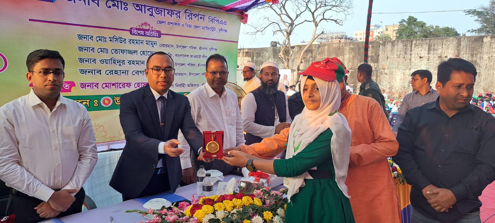 বৃহস্পতিবার বিকেল ৩টায় টায় শ্রীনগর স্টেডিয়ামে উপজেলা প্রশাসনের আয়োজনে নির্বাহী অফিসার মোশারেফ হোসাইন এর সভাপতিত্বে এতে প্রধান অতিথি হিসেবে উপস্থিত ছিলেন, জেলা প্রশাসক ও বিজ্ঞ ম্যাজিষ্ট্রেট আবু জাফর রিপন বিপিএএ।