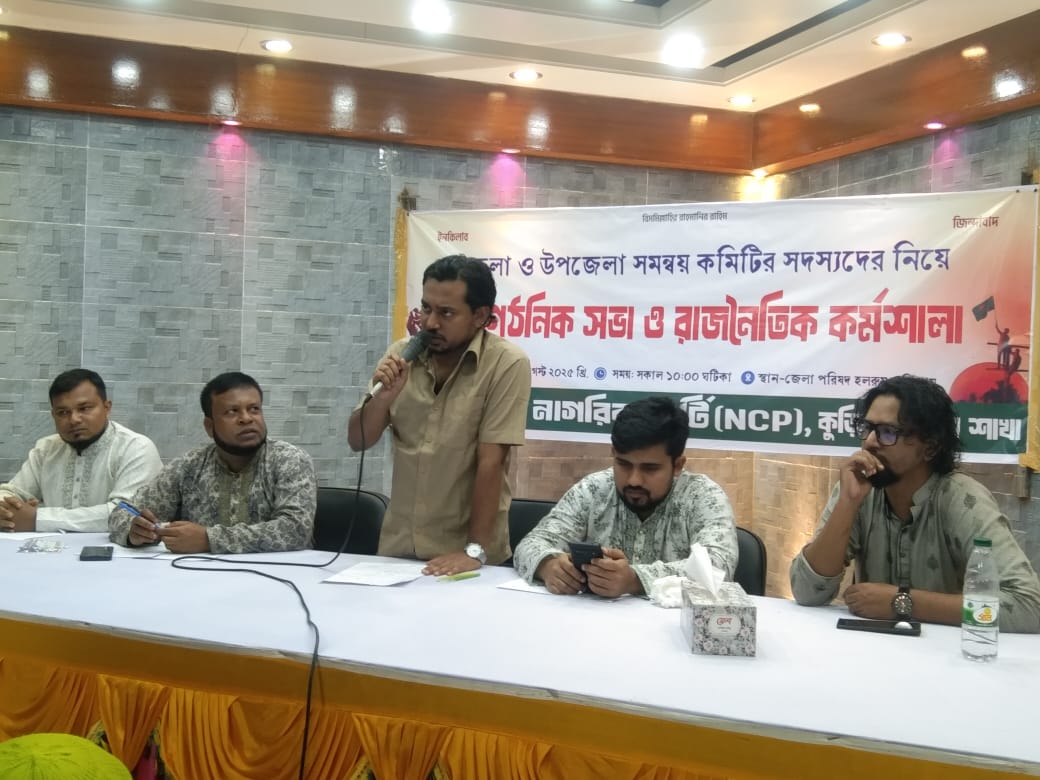 শুক্রবার সকাল ১১ টায় জাতীয় নাগরিক পার্টি কুড়িগ্রাম জেলা শাখা ও বিভিন্ন উপজেলা শাখার সমন্বয় কমিটির সদস্যদের নিয়ে সাংগঠনিক সভা ও রাজনৈতিক কর্মশালা জেলা পরিষদ হলরুমে অনুষ্ঠিত হয়। উক্ত কর্মসূচিতে অংশ নিয়ে এনসিপির কেন্দ্রীয় যুগ্ম সদস্য সচিব আরিফ সোহেল এসব কথা বলেন।
