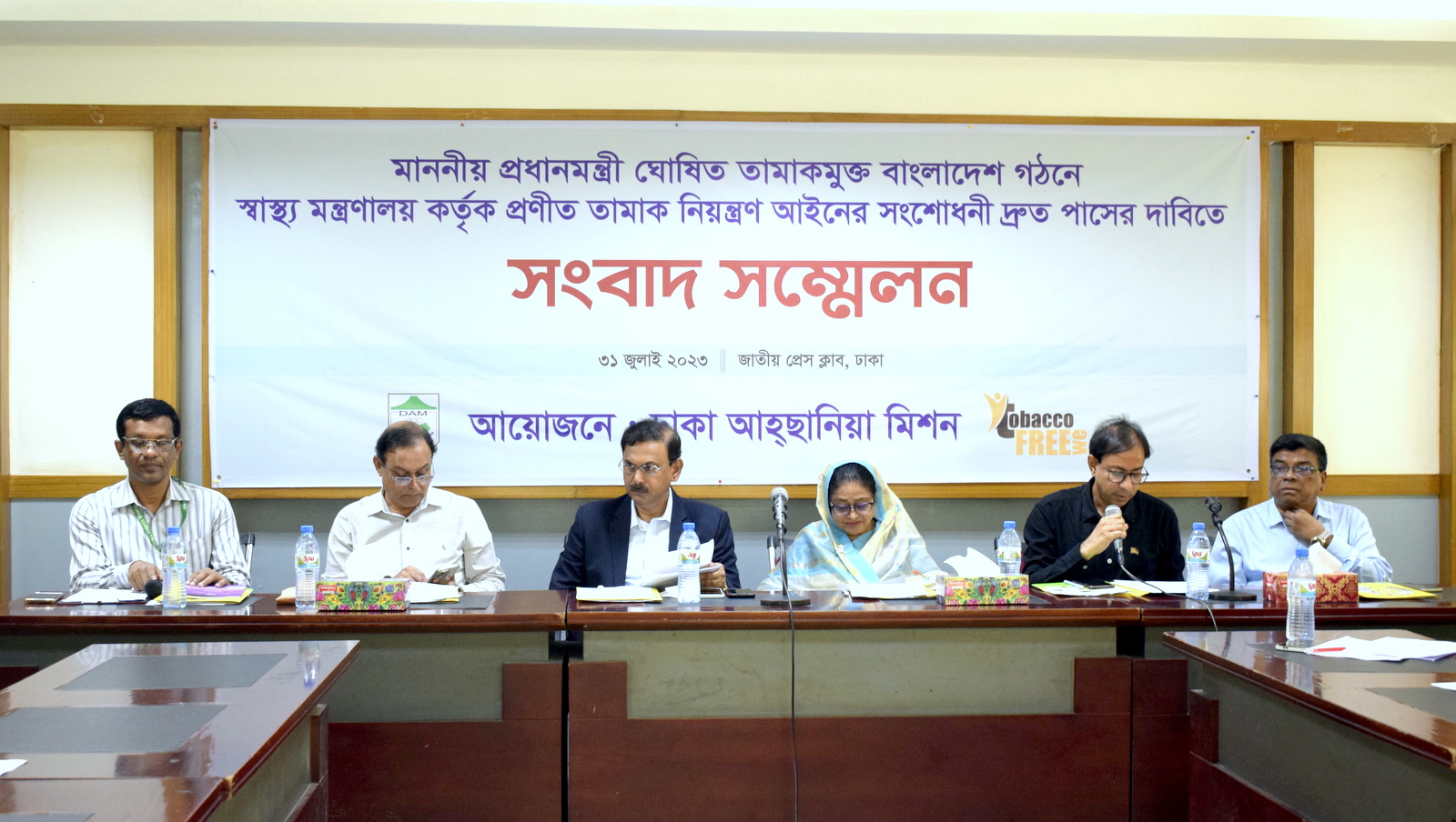 ঢাকা আহছানিয়া মিশনের স্বাস্থ্য ও ওয়াশ সেক্টরের পরিচালক ইকবাল মাসুদের সভাপতিত্বে সংবাদ সম্মেলনে মূল প্রবন্ধ পাঠ করেন সংস্থার তামাক নিয়ন্ত্রণ প্রকল্পের সমন্বয়কারী মো. শরিফুল ইসলাম। তিনি বলেন, স্বাস্থ্য মন্ত্রণালয় কর্তৃক প্রণীত তামাক নিয়ন্ত্রণ আইনের সংশোধিত খসড়াতে ধুমপানের নির্ধারিত এলাকা বিলুপ্ত, বিক্রয়স্থলে তামাকজাত দ্রব্য প্রদর্শন নিষিদ্ধ, খুচরা বিড়ি-সিগারেট বিক্রি বন্ধ, ই-সিগারেট নিষিদ্ধ, তামাক কোম্পানির সিএসআর কার্যক্রম বন্ধ ও সিগারেটের প্যাকেটে সতর্কবার্তা ৫০ থেকে ৯০ শতাংশ বাড়ানোর প্রস্তাব করা হয়েছে যা আইনটিকে আরো কঠোর করবে। ফলে তামাকজনিত মৃত্যু কমবে, জনস্বাস্থ্যের উন্নয়ন ঘটবে এবং প্রধানমন্ত্রী ঘোষিত তামাকমুক্ত বাংলাদেশের অগ্রযাত্রা ত্বরাণ্বিত হবে। এজন্য সম্মেলনে বক্তারা সংশোধিত আইনের দ্রুত পাসের জন্য জোড়ালো দাবি তুলেন।