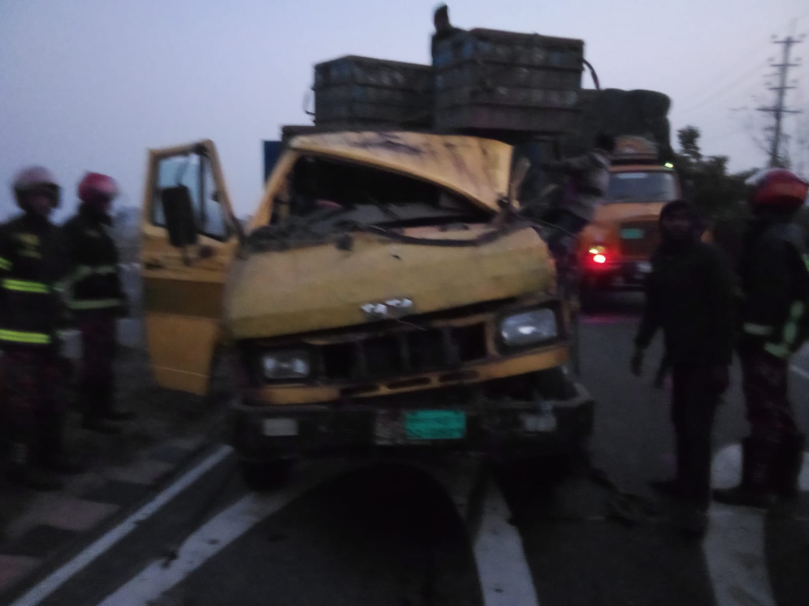 প্রত্যক্ষদর্শীরা জানায়, ঢাকাগামী ঢাকা মেট্রো-ট ১৬-০৮৪৭ নাম্বারে ট্রাকটি নষ্ট হলে মেরামতকালে কুয়াশায় দেখতে না পেরে চিংড়ি বোঝাই অপর আরেকটি ট্রাক খুলনা মেট্রো-ড ১১-০৪৫৭ পেছন থেকে ধাক্কা দেয়। এতে পিছন থেকে আশা ট্রাকের সামনের অংশ দুমড়েমুচড়ে যায়। এ সময় ট্রাকে থাকা চালক রাকিব (২৫), পিতা-মোঃ লায়েক ও হেলপার মোরসালিন (২৫), পিতা-অজ্ঞাত, উভয় সাং মোল্লারহাট,বাগেরহাট দুজনেই গুরুতর আহত হয়।