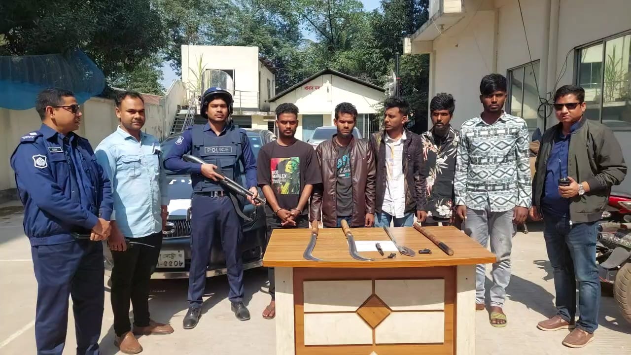 তাদের কাছ থেকে ১টি মোটরসাইকেল, ১টি প্রাইভেট কার সহ ২টি ছ্যান দা, ১ টি চাইনিজ কুড়াল, ১ টি সুইচ গিয়ার ও ১ টি লাঠি জব্দ করা হয়েছে।
