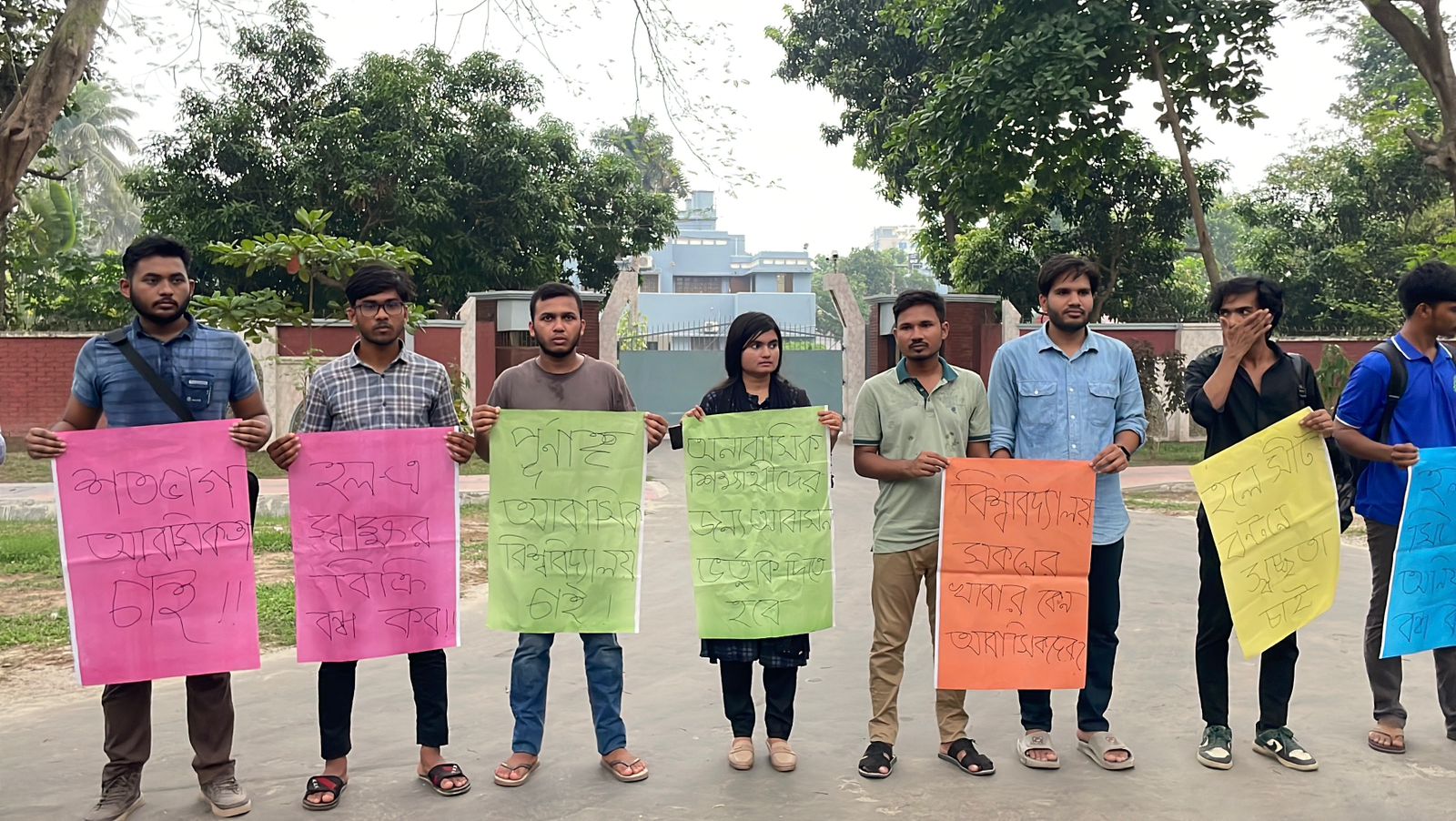 উল্লেখ্য, এসময় বিশ্ববিদ্যালয়ের বিভিন্ন বিভাগের শিক্ষার্থীরা এই মানববন্ধনে অংশগ্রহণ করেন।