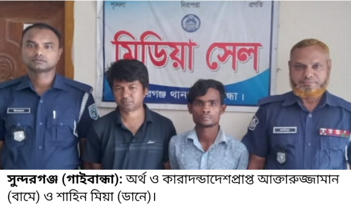 গাইবান্ধার সুন্দরগঞ্জ থানা পুলিশ পৃথক অভিযান চালিয়ে অর্থ ও কারাদন্ডাদেশপ্রাপ্ত ২ আসামীকে গ্রেপ্তার করেছে।