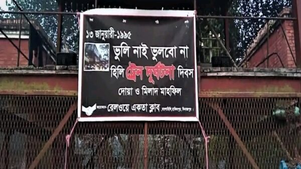 হিলি(দিনাজপুর): আজ ১৩ই জানুয়ারী দিনাজপুরের হিলি ট্রেন ট্রাজেডি দিবস পালিত হয়। ১৯৯৫ সালের (১৩ই জানুয়ারী) আজকের এই দিনে রাত সাড়ে ৯ টার দিকে হিলি রেলষ্টেশনে দাঁড়িয়ে থাকা গোয়ালন্দ থেকে ছেড়ে আসা পার্বতীপুরগামী লোকাল ট্রেনের সাথে বিপরিত দিক সৈয়দপুর থেকে ছেড়ে আসা খুলনাগামী আন্তঃনগর সীমান্ত এক্সপ্রেস ট্রেনের মুখ-মুখি সংঘর্ষ হয়। সংষর্ষে লোকাল ট্রেন ও আন্তঃনগর সীমান্ত এক্সপ্রেস ট্রেনের ইঞ্জিনসহ ৩ টি বগী দুমড়ে মুচড়ে যায়।