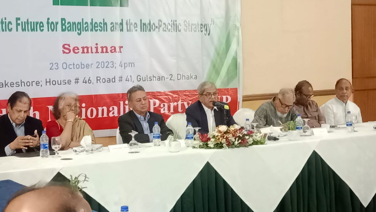 সোমবার (২৩ অক্টোবর) সন্ধ্যায় গুলশানে হোটেল লেকশোরে বিএনপির উদ্যোগে ‘বাংলাদেশের রাজনৈতিক ভবিষ্যৎ এবং ইন্দো-প্যাসেফিক কৌশল’ শীর্ষক এক সেমিনারে তিনি এ কথা বলেন। এতে মূল প্রবন্ধ পাঠ করেন দলের স্থায়ী কমিটির সদস্য আন্তর্জাতিক সম্পর্ক বিষয়ক কমিটির চেয়ারম্যান আমীর খসরু মাহমুদ চৌধুরী।