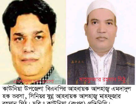 জহির রায়হান কাউনিয়া (রংপুর) প্রতিনিধি ঃ বাংলাদেশ জাতীয়তাবাদী দল (বিএনপি) কাউনিয়া উপজেলা শাখার ৩৩ সদস্য বিশিষ্ট আহবায়ক কমিটির অনুমোদন দিয়েছে বিএনপি জেলা আহবায়ক কমিটি। জেলা বিএনপির আহবায়ক মোঃ সাইফুল ইসলাম, সিনিয়র যুগ্ন আহবায়ক মোঃ আফছার আলী ও সদস্য সচিব মোঃ আনিছুর রহমান লাকু স্বাক্ষরিত দলীয় প্যাডে কাউনিয়া উপজেলা বিএনপির ৩৩ সদস্য বিশিষ্ট আহবায়ক কমিটির অনুমোদন দেয়া হয়েছে। নতুন ঘোষিত কমিটিতে উপজেলা বিএনপির সাবেক সভাপতি আলহাজ্ব এমদাদুল হক ভরসা কে আহবায়ক, কাউনিয়া উপজেলা পরিষদের সাবেক চেয়ারম্যান আলহাজ্ব মাহফুজার রহমান মিঠু কে সিনিয়র যুগ্ন আহবায়ক, হারাগাছ ইউনিয়ন পরিষদের সাবেক চেয়ারম্যান মোঃ রাকিবুল হাসান পলাশ, যুবদলের উপজেলা শাখার সাবেক সভাপতি মোঃ আব্দুর রহিম, সাবেক সাধারণ সম্পাদক মোঃ জামিনুর রহমান, স্বেচ্ছাসেবক দল উপজেলা শাখার সভাপতি মোঃ আলমগীর চৌধুরী লিটন, উপজেলা বিএনপির সাবেক কোষাধ্যক্ষ মোঃ আক্তারুজ্জামান মন্ডল, সারাই ইউনিয়ন বিএনপি নেতা সোহেল রানা সোহেল, বিএনপি নেতা মোঃ আতিকুল ইসলাম সোহাগ কে যুগ্ম আহবায়ক ও বালাপাড়া ইউনিয়ন বিএনপির সভাপতি এ্যাডভোকেট মোঃ মোজাহারুল আলম বাবলু কে সদস্য সচিব করে ৩৩ সদস্য বিশিষ্ট্য বিএনপি কাউনিয়া উপজেলা শাখার আহবায়ক কমিটি অনুমোদন দেয়া হয়। দলীয় প্যাডে জেলা বিএনপির আহবায়ক কমিটির আহবায়ক মোঃ সাইফুল আলম, সিনিয়র যুগ্ম আহবায়ক মোঃ আফছার আলী ও সদস্য সচিব মোঃ আনিছুর রহমান লাকু, ২১ মার্চ স্বাক্ষর করলেও তা প্রকাশ করা হয় গত মঙ্গলবার (২৮ মার্চ) রাতে। উপজেলার ৬ ইউনিয়নের বিএনপির তৃর্ণমূল পর্যায়ের নেতা কর্মীরা নতুন উপজেলা আহবায়ক কমিটি কে অভিনন্দন জানিয়েছে।