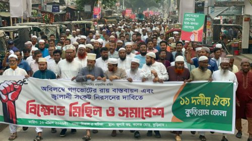 গণভোটের রায় বাস্তবায়নের দাবিতে কুড়িগ্রামে ১১ দলীয় ঐক্যের বিক্ষোভ